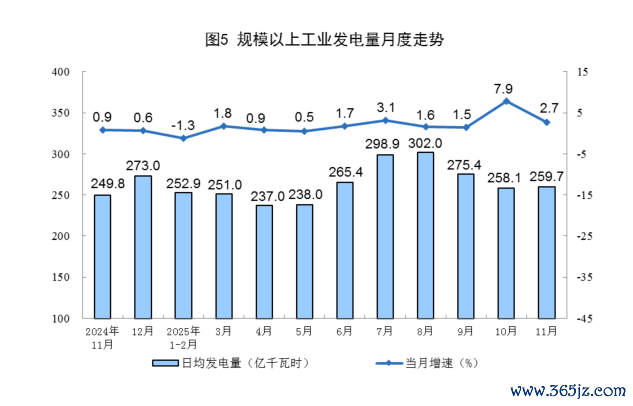国家统计局:11月份规上工业发电量7792亿千瓦时昊天优配,同比增长2.7%;国家统计局:11月份规上工业发电量7792亿千瓦时,同比增长2.7%;