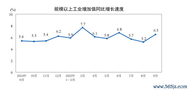 国家统计局:9月份规模以上工业增加值增长6.5%国家统计局:9月份规模以上工业增加值增长6.5%