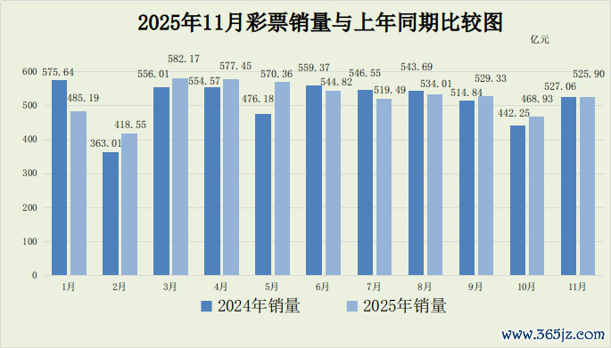 财政部:11月份全国共销售彩票525.90亿元,同比减少1.17亿元财政部:11月份全国共销售彩票525.90亿元,同比减少1.17亿元